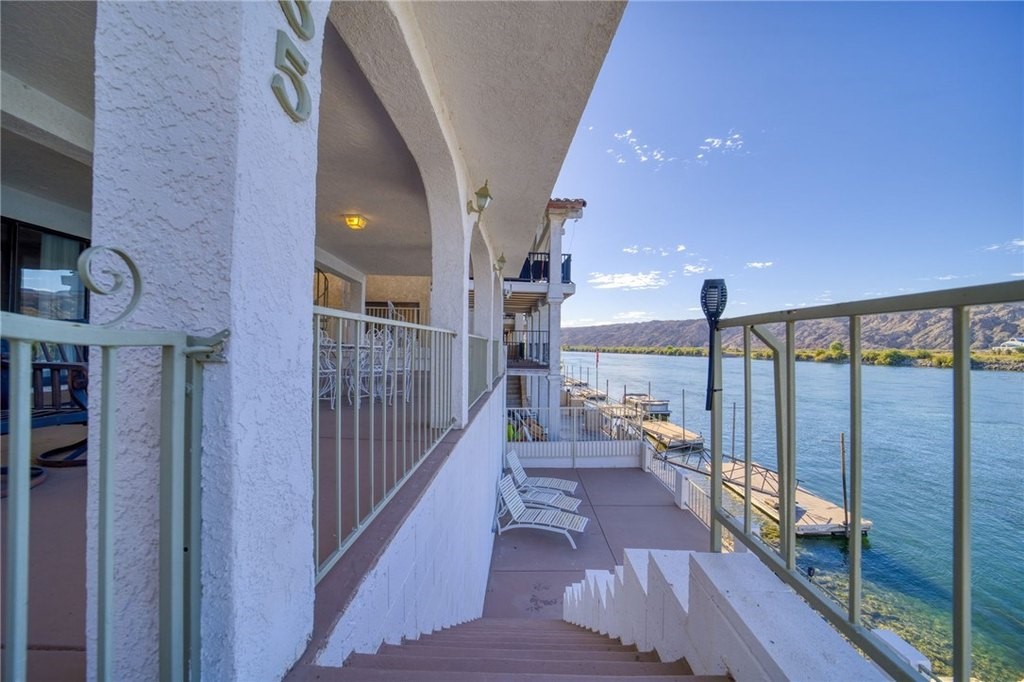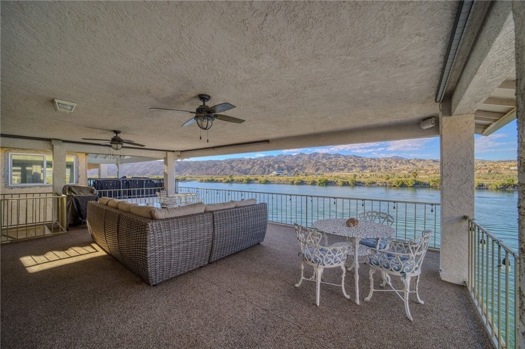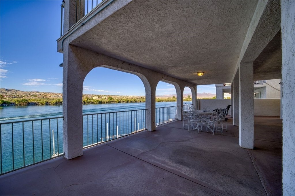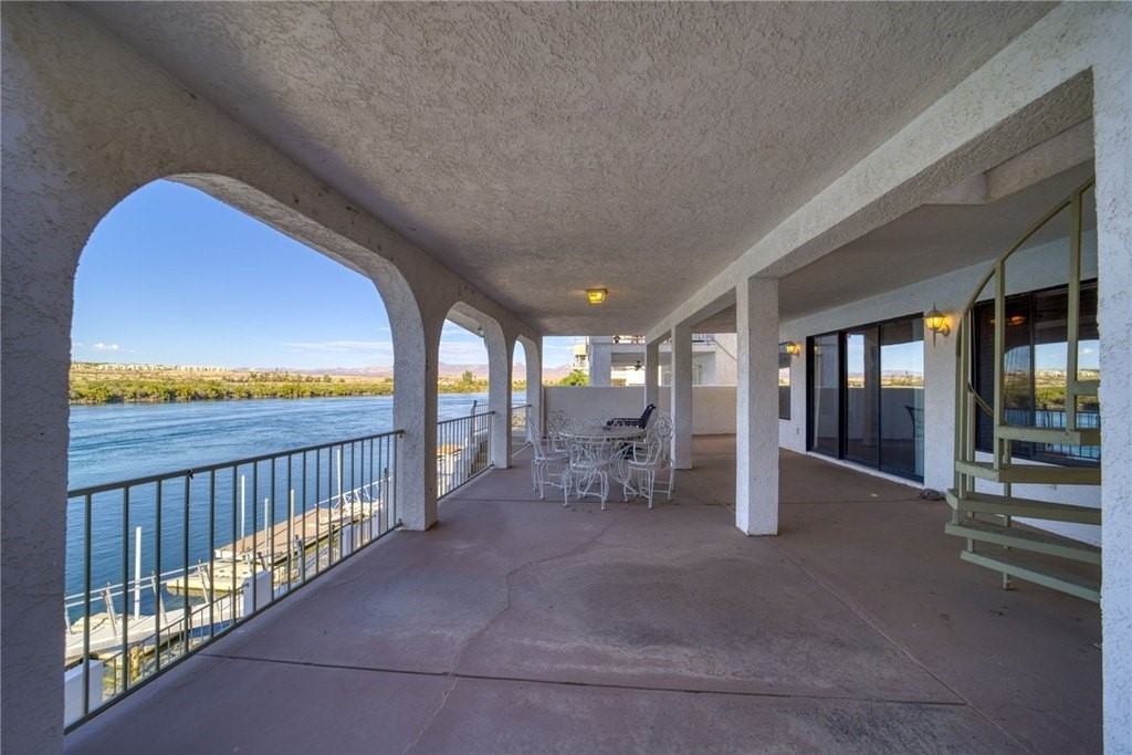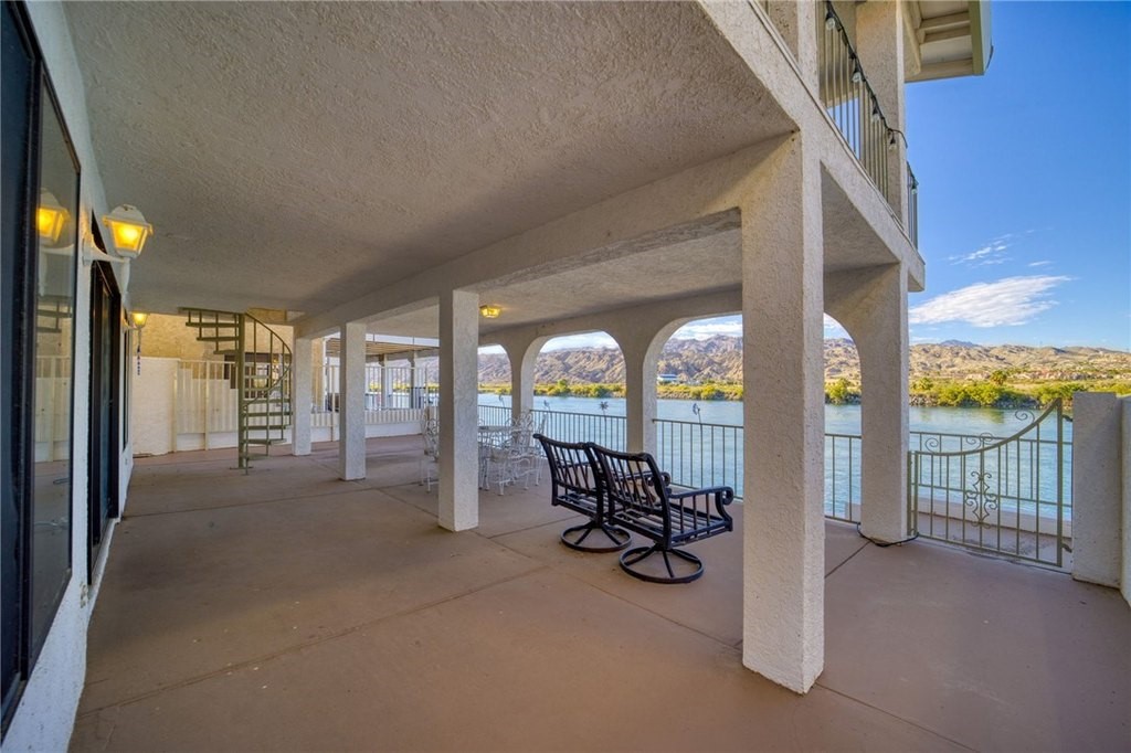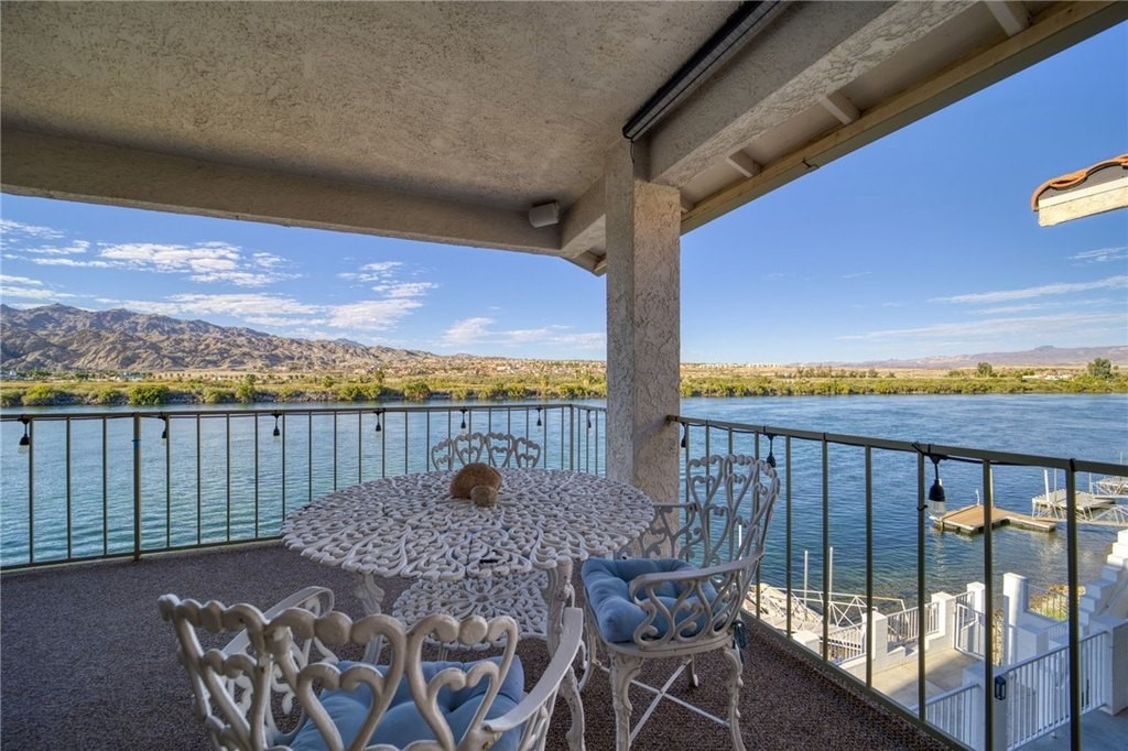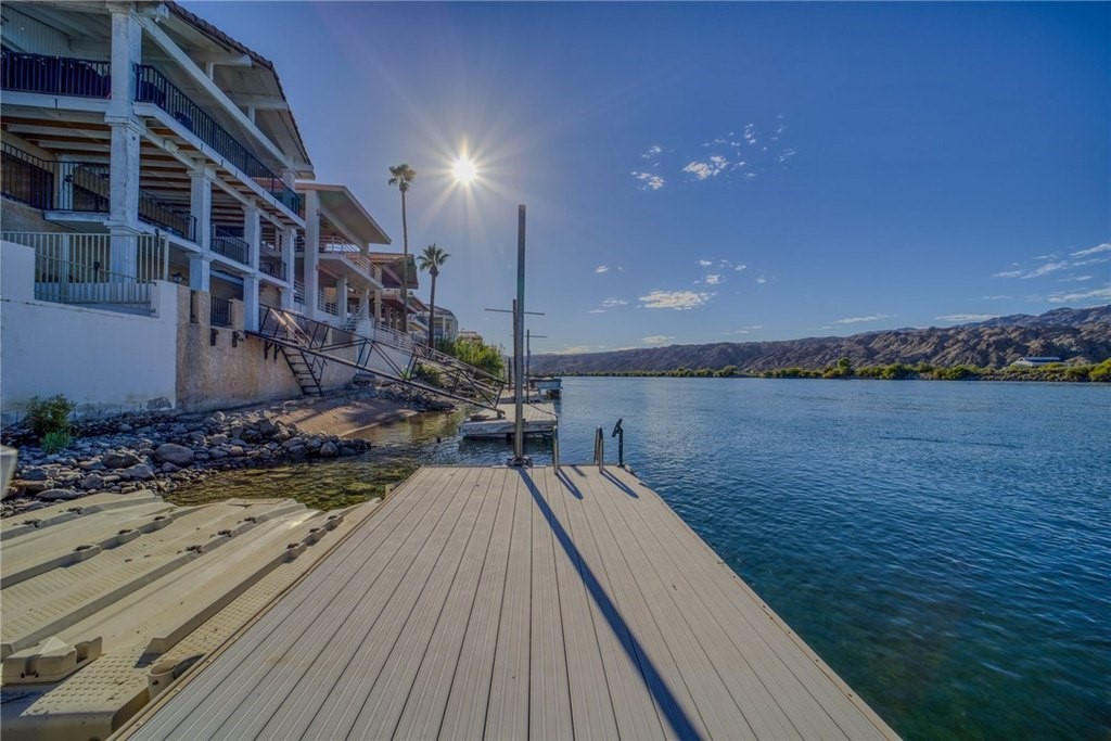 Riverfront adventure meets year-round comfort in this beautifully maintained 5-bedroom, 3-bath home offering over 3,480 sq ft of versatile living space. Whether you're chasing weekend thrills or settling into full-time river and desert living, this home delivers the best of both worlds. Inside, you'll find elegant natural stone flooring, and a spacious open floor plan designed for both entertaining and everyday life. Enjoy two living areas, dual dining spaces, a large open kitchen, and a generous rec room and full bar in the lower level ideal for relaxing after a day on the water or trails. The main-level master suite offers convenience and privacy, making this home as practical as it is fun. Step outside to your expansive covered patio and upper balcony perfect for BBQs, sunset cocktails, or just soaking in the panoramic river views. Located on a prime deep-water stretch of the river, the private dock is ready for action, with room for one boat and jet skis no need to trailer your toys for every outing. With three newer HVAC units (2019), this home is built for all-season comfort cool in the summer, cozy in the winter. Whether you're escaping for the weekend or making river life your daily routine, this is the ultimate home base for desert rides, river days, and everything in between.