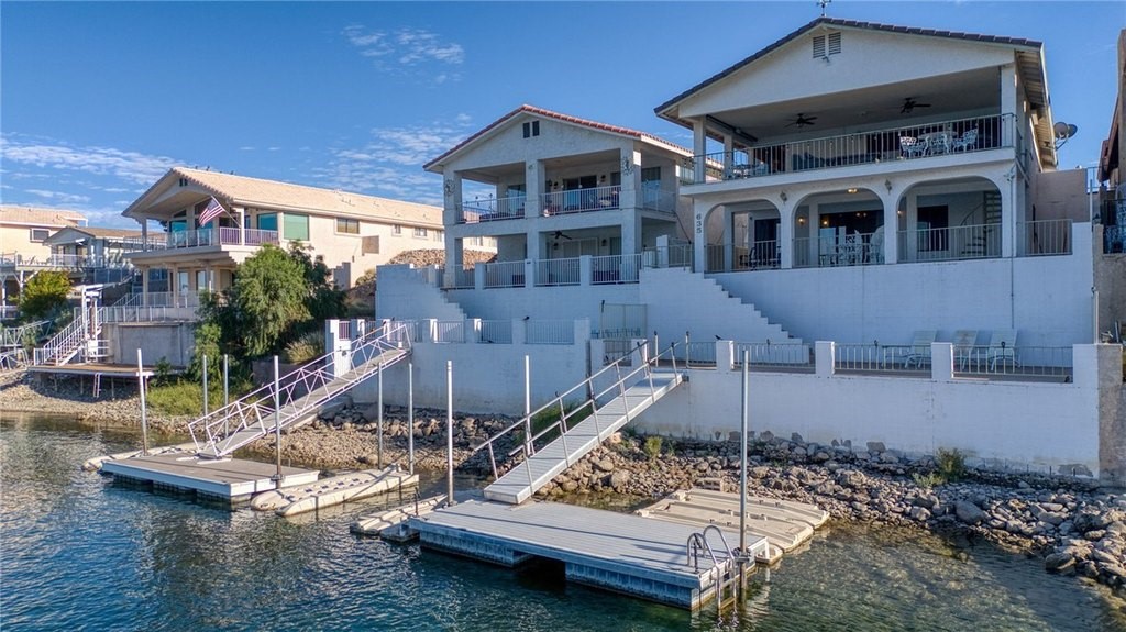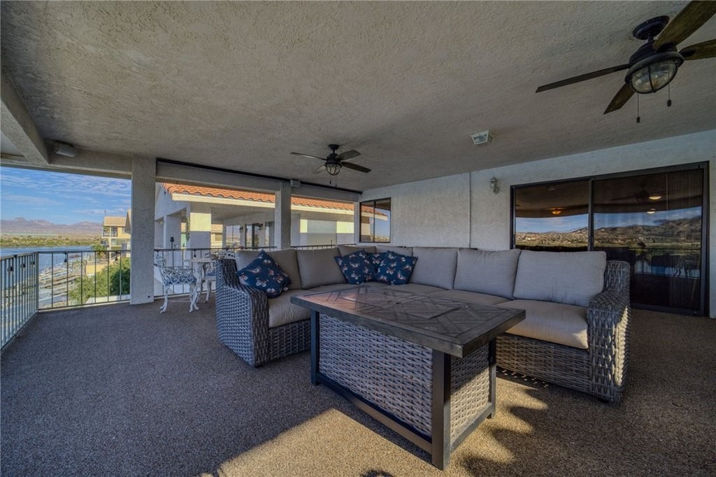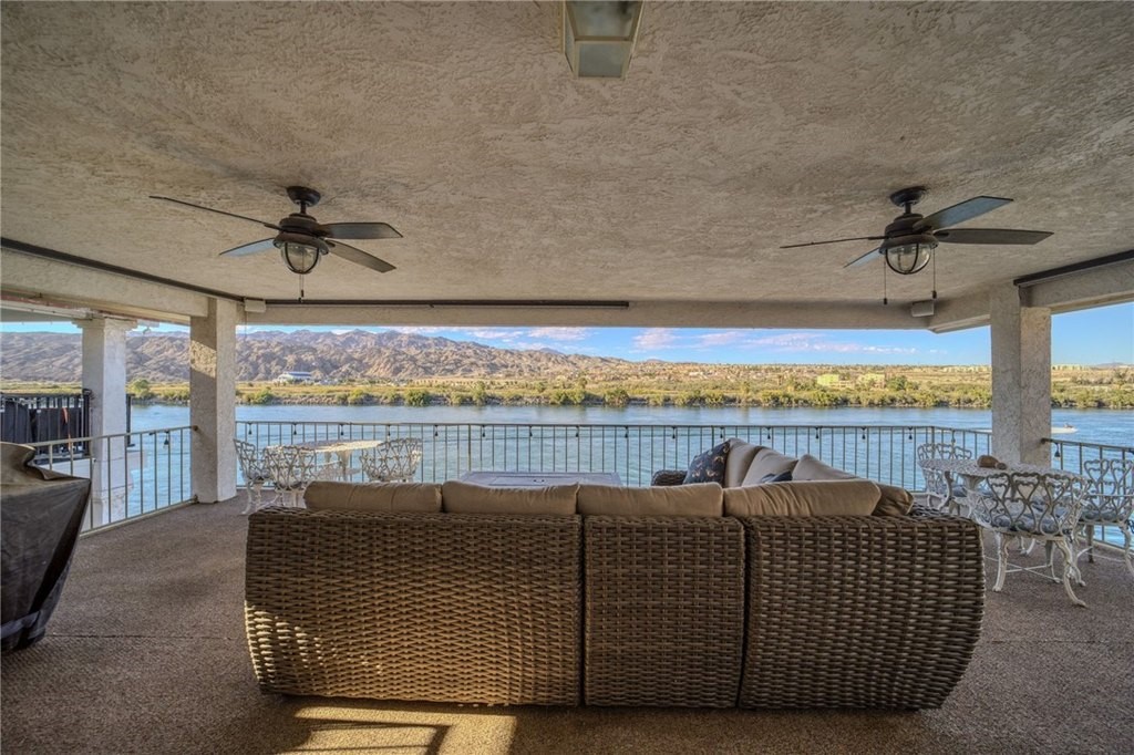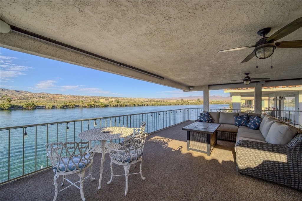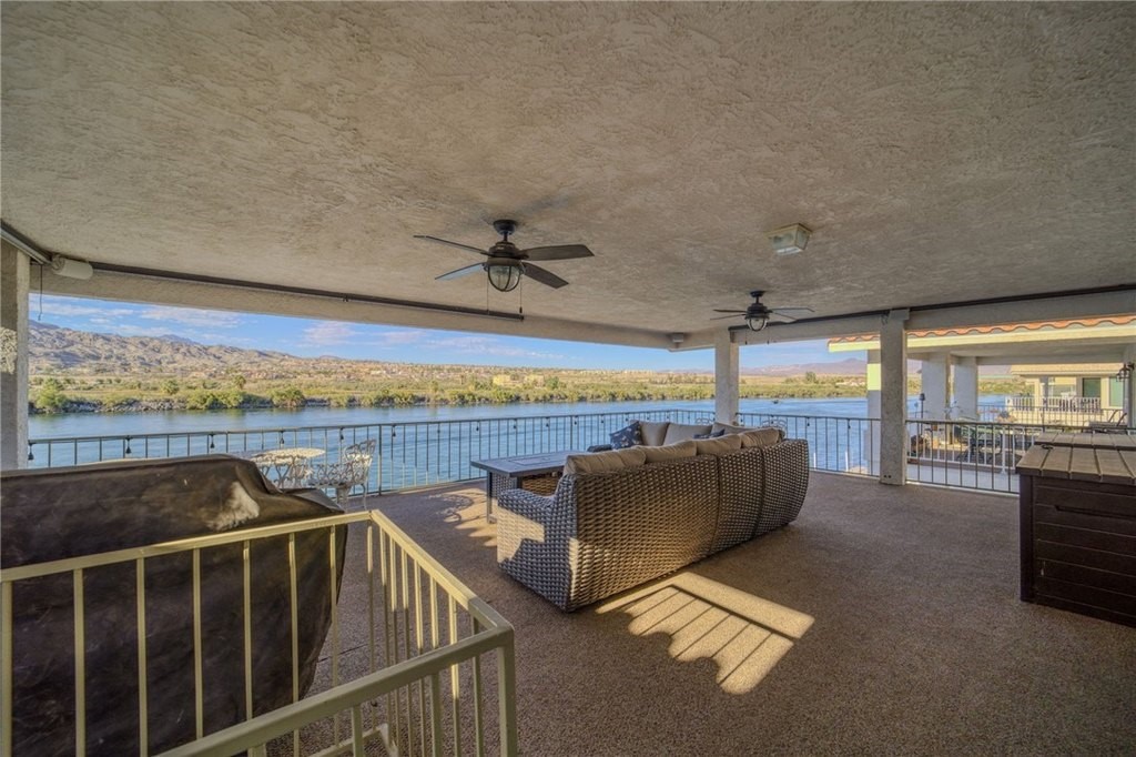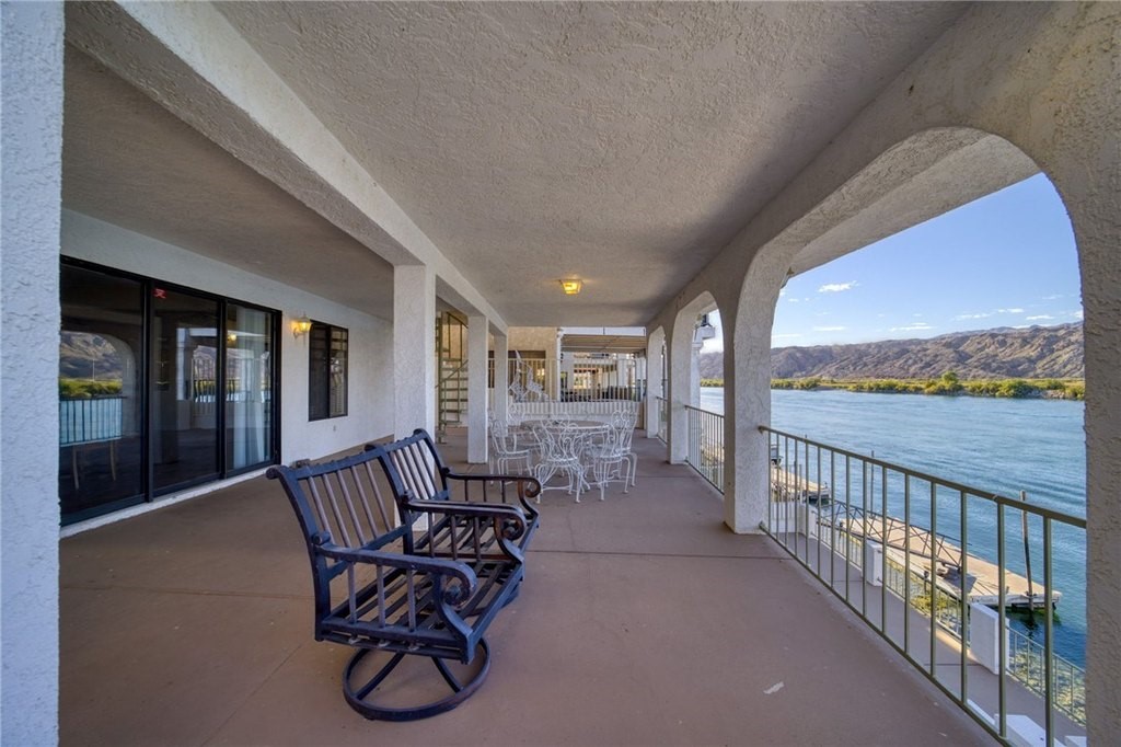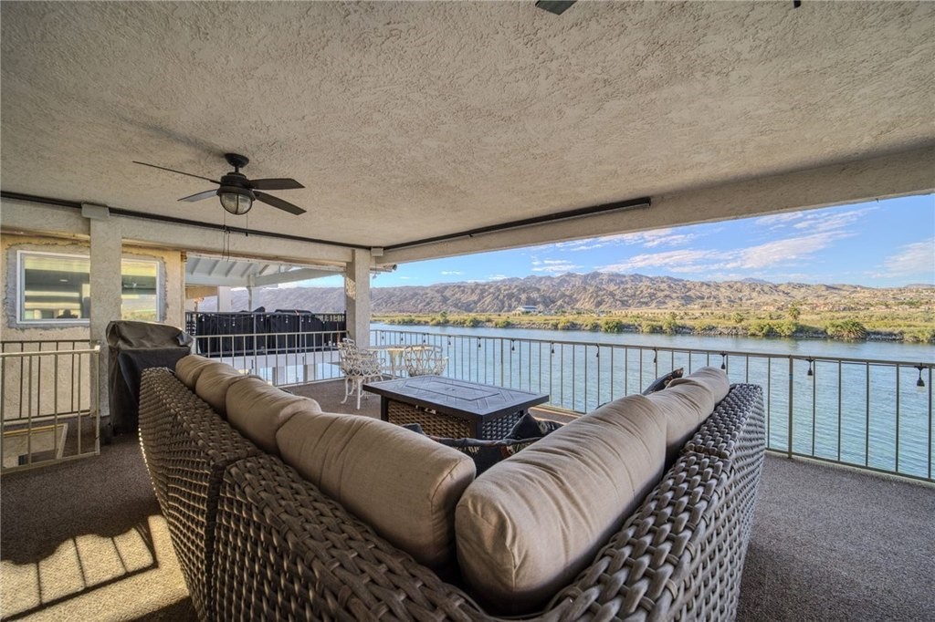 Riverfront adventure meets year-round comfort in this beautifully maintained 5-bedroom, 3-bath home offering over 3,480 sq ft of versatile living space. Whether you're chasing weekend thrills or settling into full-time river and desert living, this home delivers the best of both worlds. Inside, you'll find elegant natural stone flooring, and a spacious open floor plan designed for both entertaining and everyday life. Enjoy two living areas, dual dining spaces, a large open kitchen, and a generous rec room and full bar in the lower level ideal for relaxing after a day on the water or trails. The main-level master suite offers convenience and privacy, making this home as practical as it is fun. Step outside to your expansive covered patio and upper balcony perfect for BBQs, sunset cocktails, or just soaking in the panoramic river views. Located on a prime deep-water stretch of the river, the private dock is ready for action, with room for one boat and jet skis no need to trailer your toys for every outing. With three newer HVAC units (2019), this home is built for all-season comfort cool in the summer, cozy in the winter. Whether you're escaping for the weekend or making river life your daily routine, this is the ultimate home base for desert rides, river days, and everything in between.