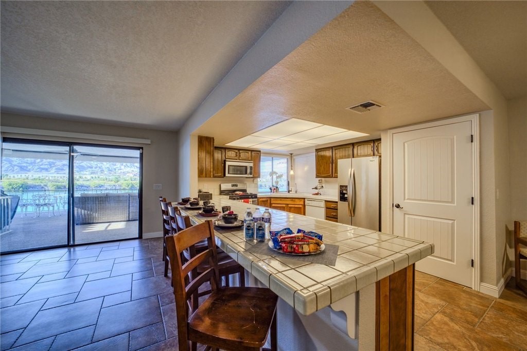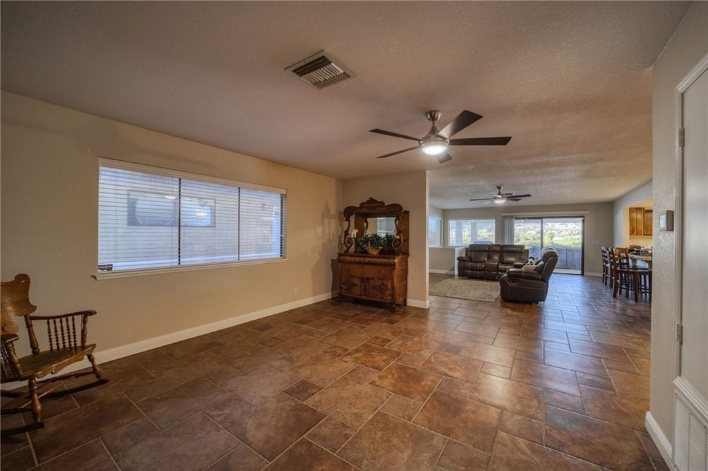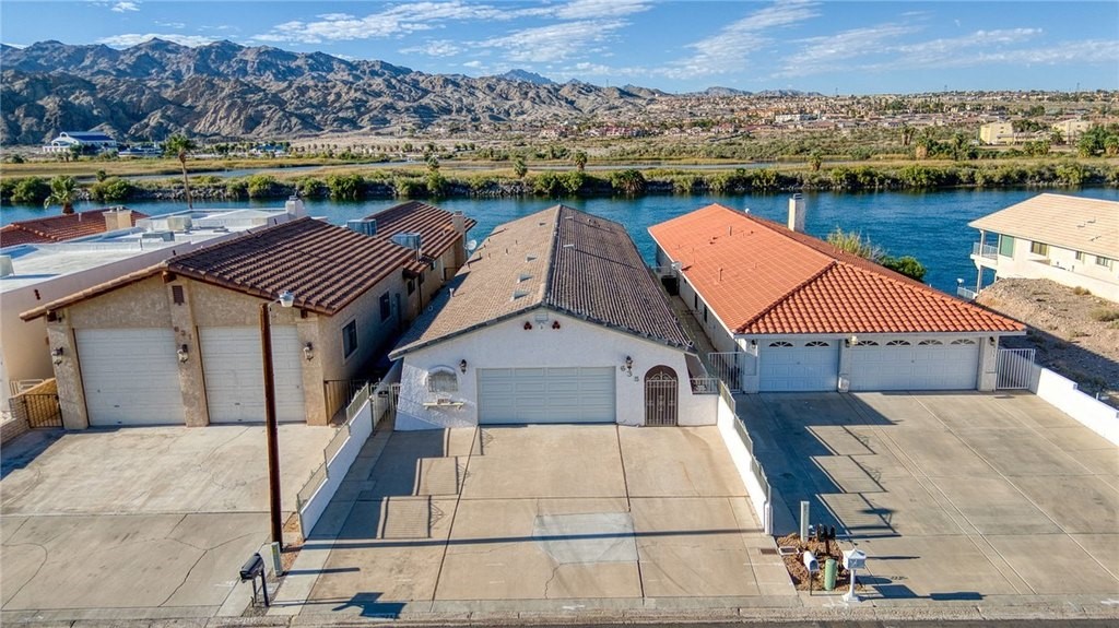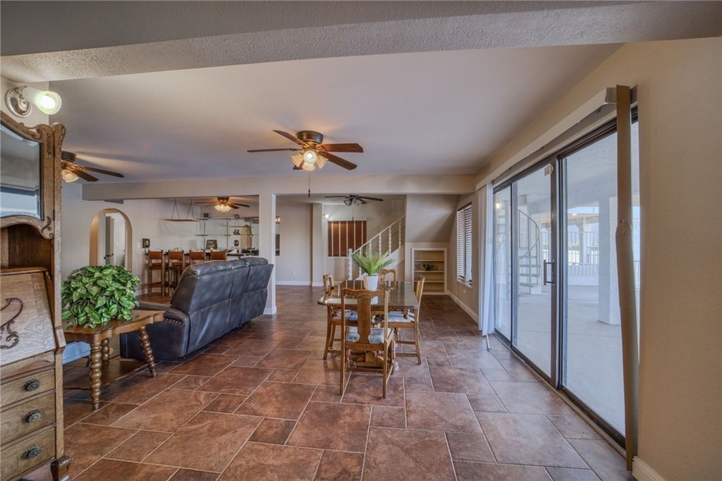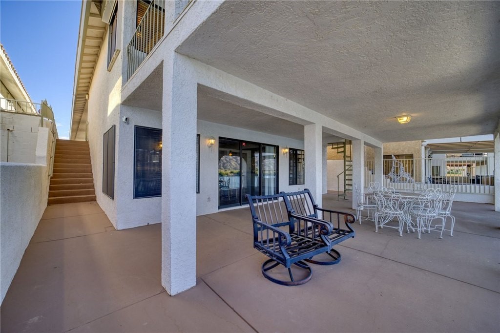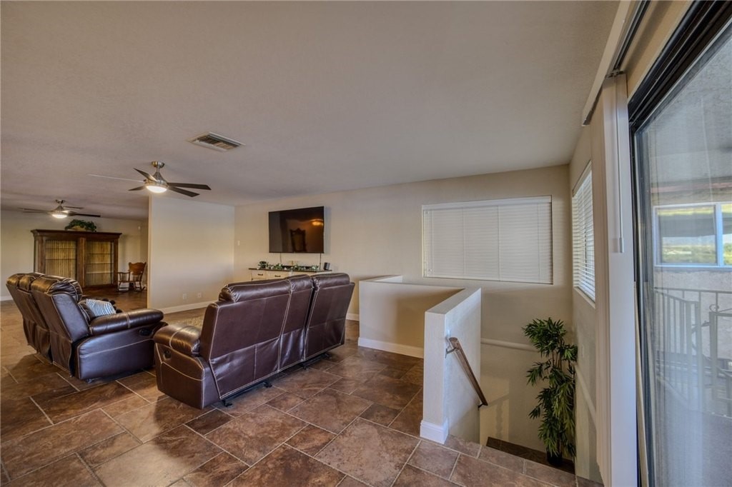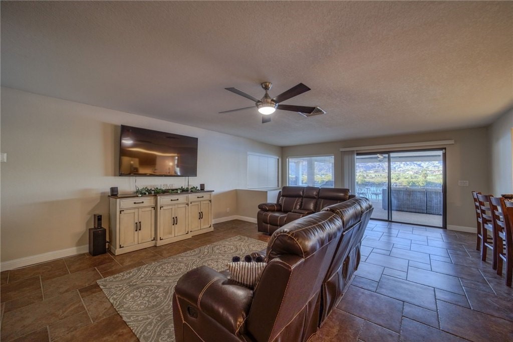 Riverfront adventure meets year-round comfort in this beautifully maintained 5-bedroom, 3-bath home offering over 3,480 sq ft of versatile living space. Whether you're chasing weekend thrills or settling into full-time river and desert living, this home delivers the best of both worlds. Inside, you'll find elegant natural stone flooring, and a spacious open floor plan designed for both entertaining and everyday life. Enjoy two living areas, dual dining spaces, a large open kitchen, and a generous rec room and full bar in the lower level ideal for relaxing after a day on the water or trails. The main-level master suite offers convenience and privacy, making this home as practical as it is fun. Step outside to your expansive covered patio and upper balcony perfect for BBQs, sunset cocktails, or just soaking in the panoramic river views. Located on a prime deep-water stretch of the river, the private dock is ready for action, with room for one boat and jet skis no need to trailer your toys for every outing. With three newer HVAC units (2019), this home is built for all-season comfort cool in the summer, cozy in the winter. Whether you're escaping for the weekend or making river life your daily routine, this is the ultimate home base for desert rides, river days, and everything in between.