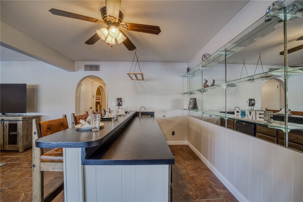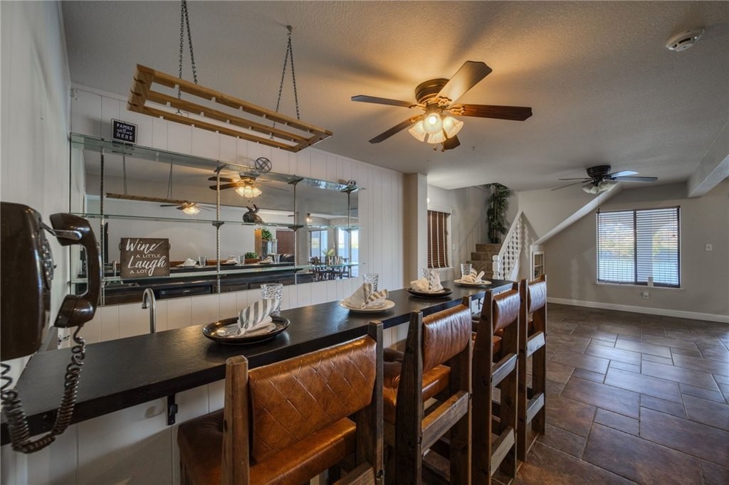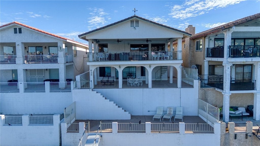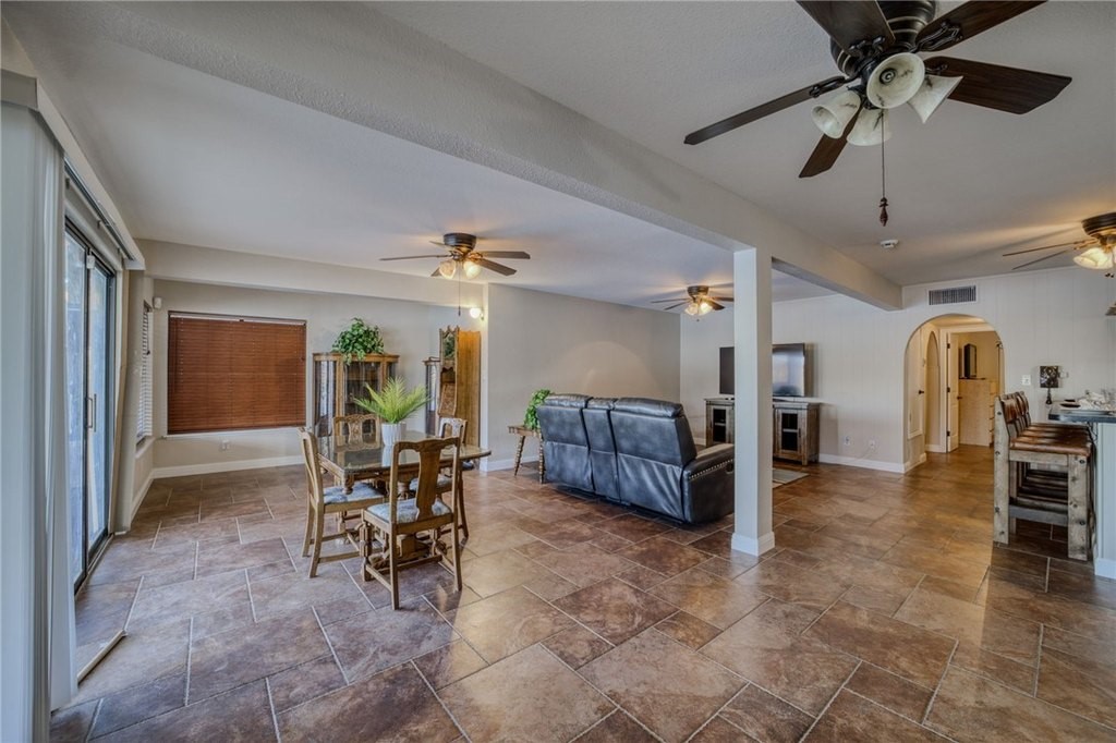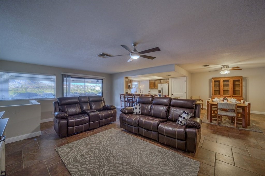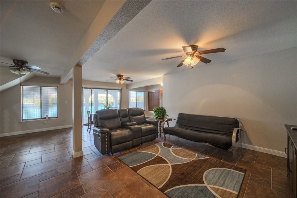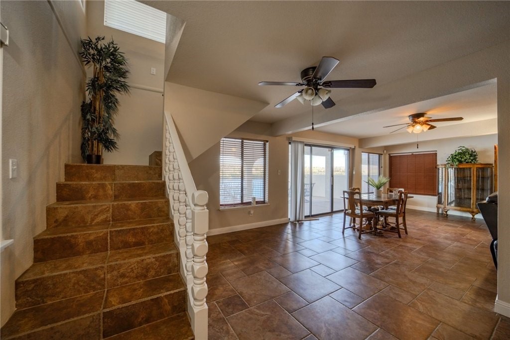 Riverfront adventure meets year-round comfort in this beautifully maintained 5-bedroom, 3-bath home offering over 3,480 sq ft of versatile living space. Whether you're chasing weekend thrills or settling into full-time river and desert living, this home delivers the best of both worlds. Inside, you'll find elegant natural stone flooring, and a spacious open floor plan designed for both entertaining and everyday life. Enjoy two living areas, dual dining spaces, a large open kitchen, and a generous rec room and full bar in the lower level ideal for relaxing after a day on the water or trails. The main-level master suite offers convenience and privacy, making this home as practical as it is fun. Step outside to your expansive covered patio and upper balcony perfect for BBQs, sunset cocktails, or just soaking in the panoramic river views. Located on a prime deep-water stretch of the river, the private dock is ready for action, with room for one boat and jet skis no need to trailer your toys for every outing. With three newer HVAC units (2019), this home is built for all-season comfort cool in the summer, cozy in the winter. Whether you're escaping for the weekend or making river life your daily routine, this is the ultimate home base for desert rides, river days, and everything in between.